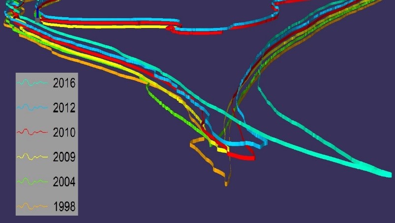 Cape Lookout, NC Historic Shoreline Contours in 3D