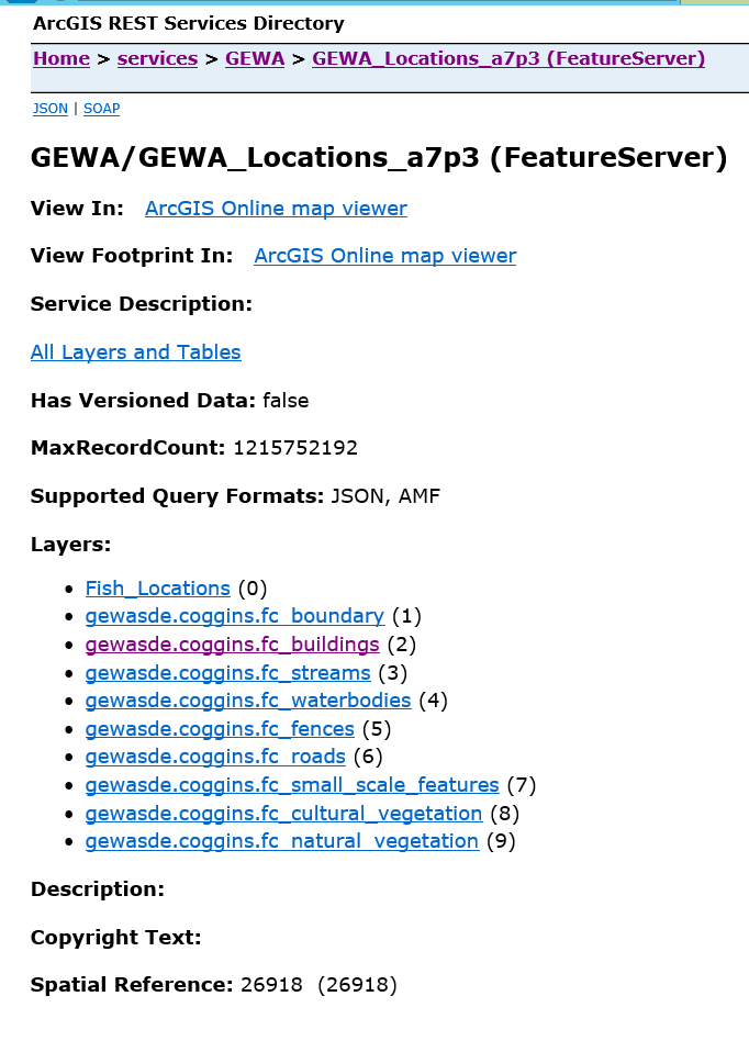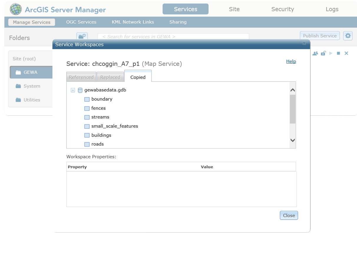 Reflection: The extensive experience configuring various types of spatial data for use in web services gained through this project cannot be overvalued. This project required attention to detail, meticulous database organization, and the ability to quickly solve problems as they arose during publishing. These skills have provided me with the framework to configure spatial databases and employ advanced web service techniques for any type of spatial data. This project also provided students with an extensive view of the capabilities and potential issues involved with Enterprise software web hosting, web mapping, and application development.
