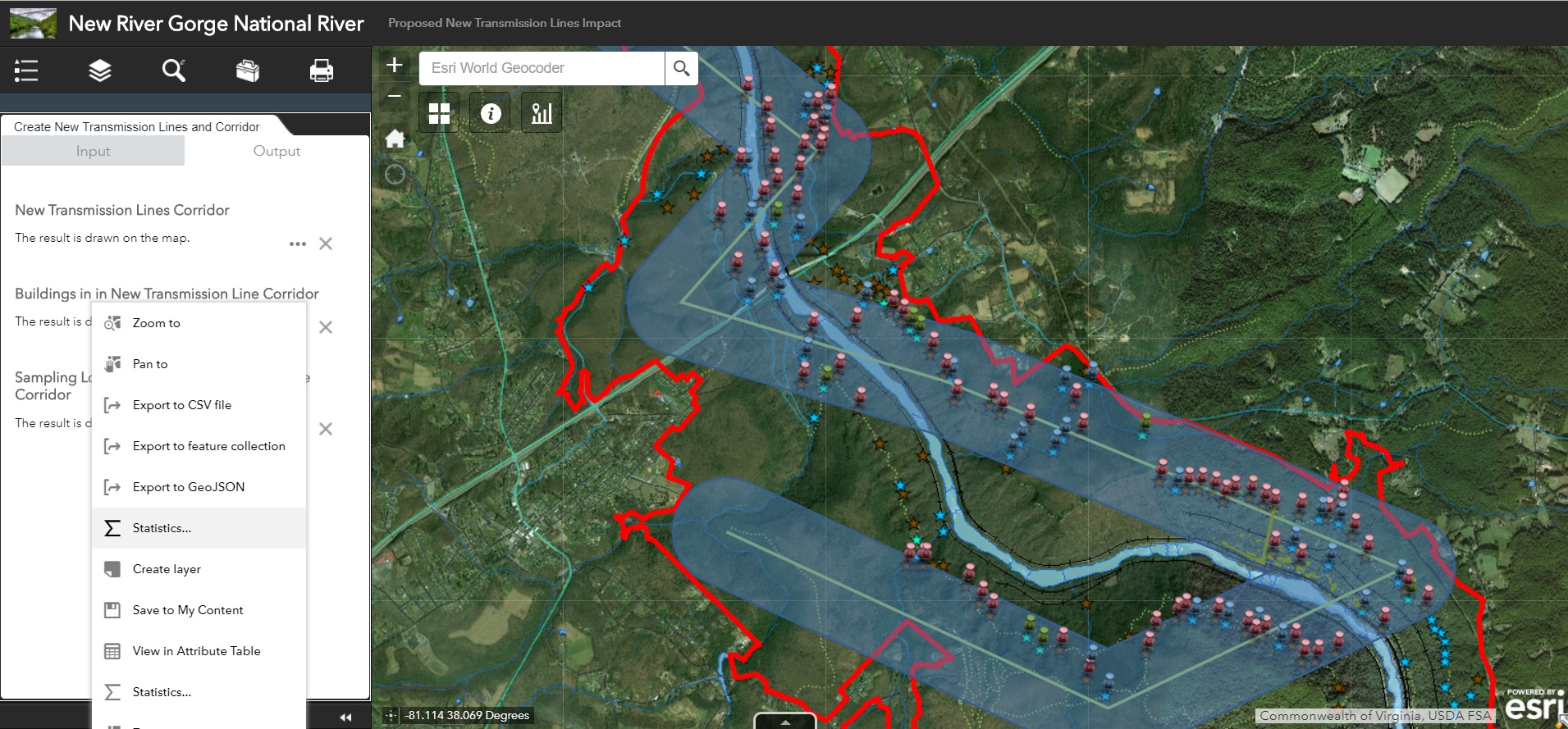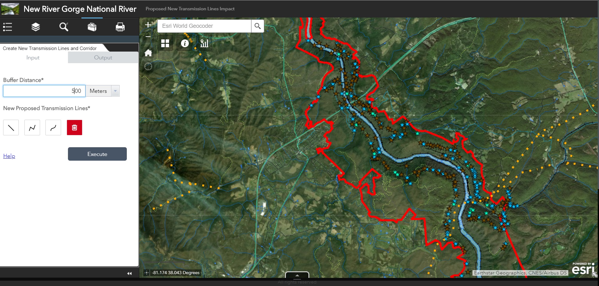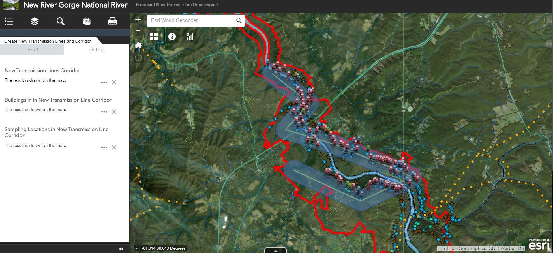 Comparing Hosted Geoprocessing Services and eSearch Widget for Transmission Line Impact Study