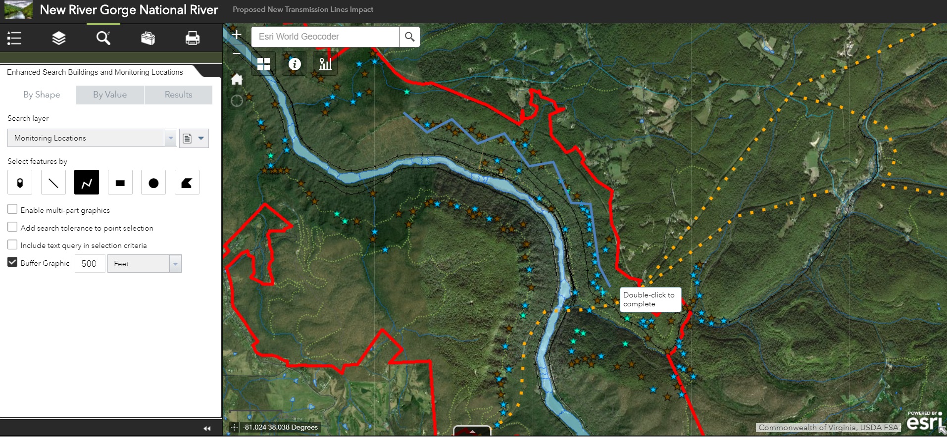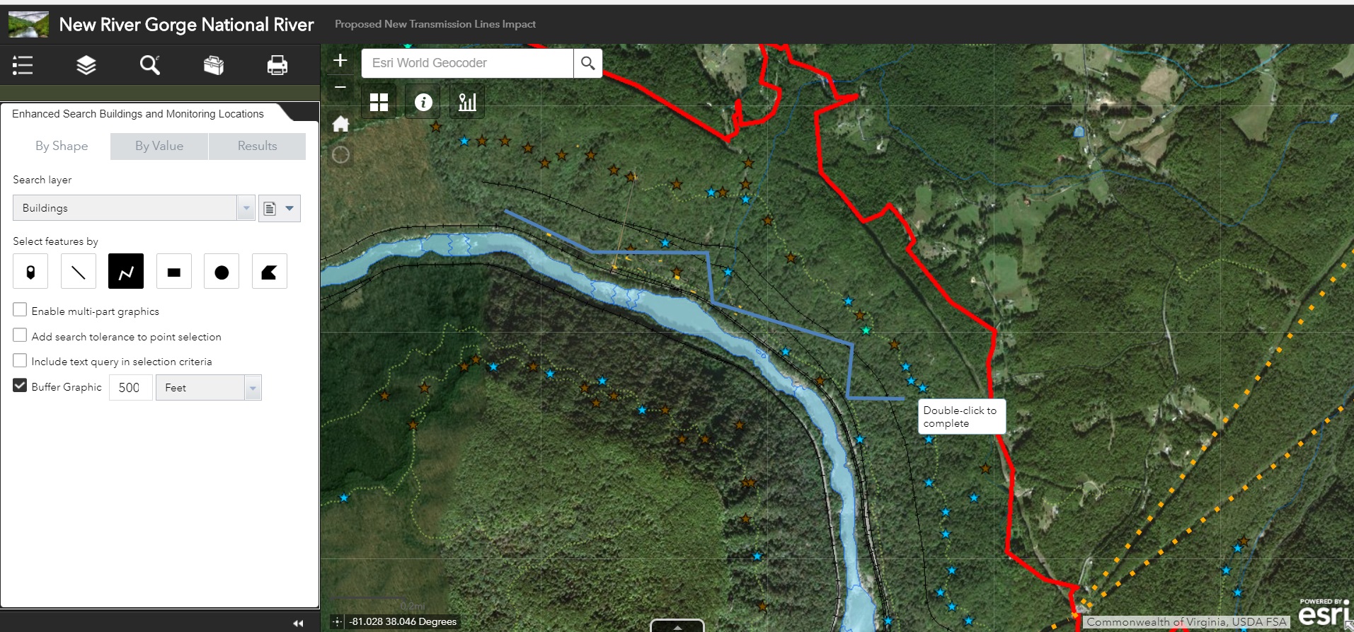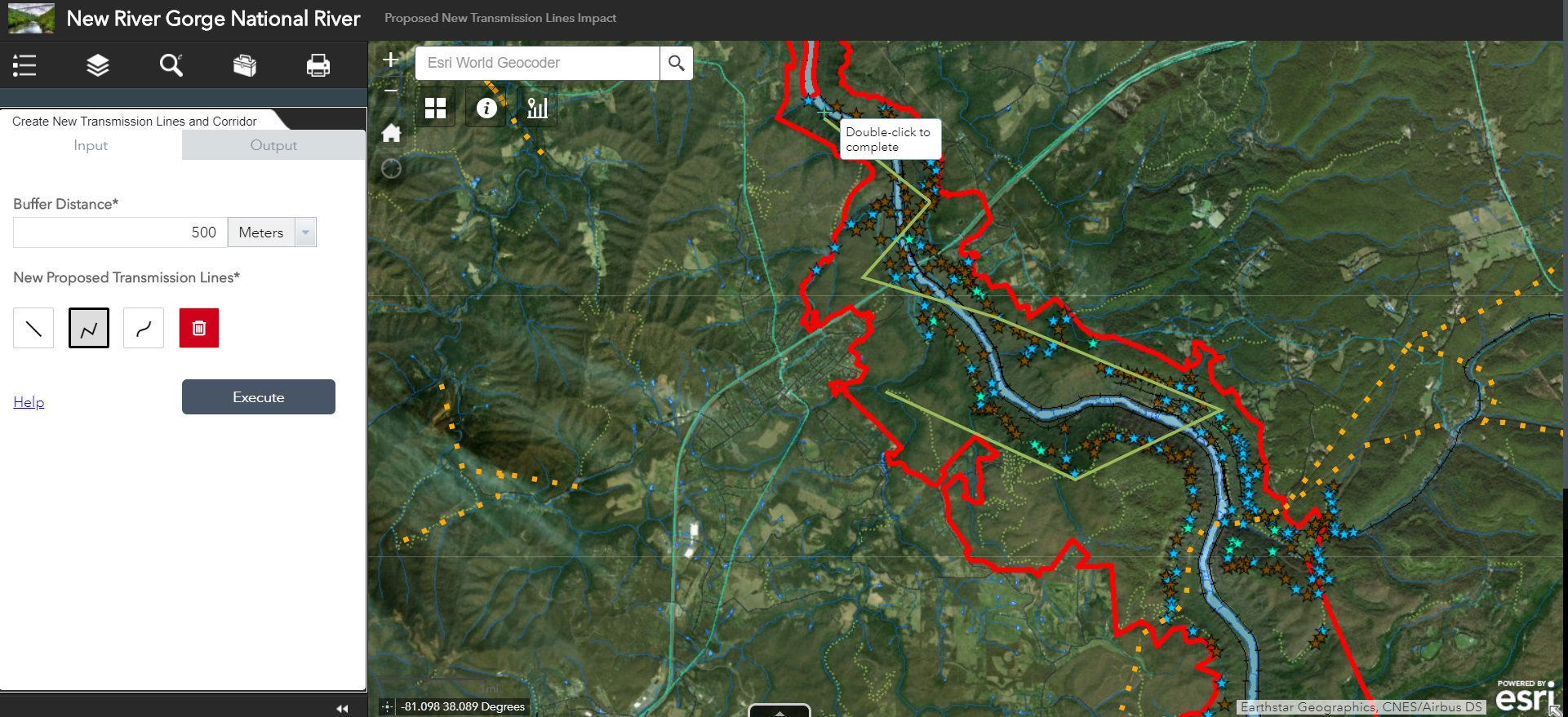 Comparing Hosted Geoprocessing Services and eSearch Widget for Transmission Line Impact Study