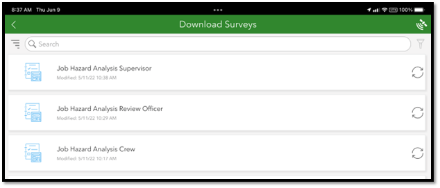 - Job Hazard Analysis – Survey version that contains all fields and needs to be published first. This provides the full schema of the feature service. This survey is not used to collect survey records.